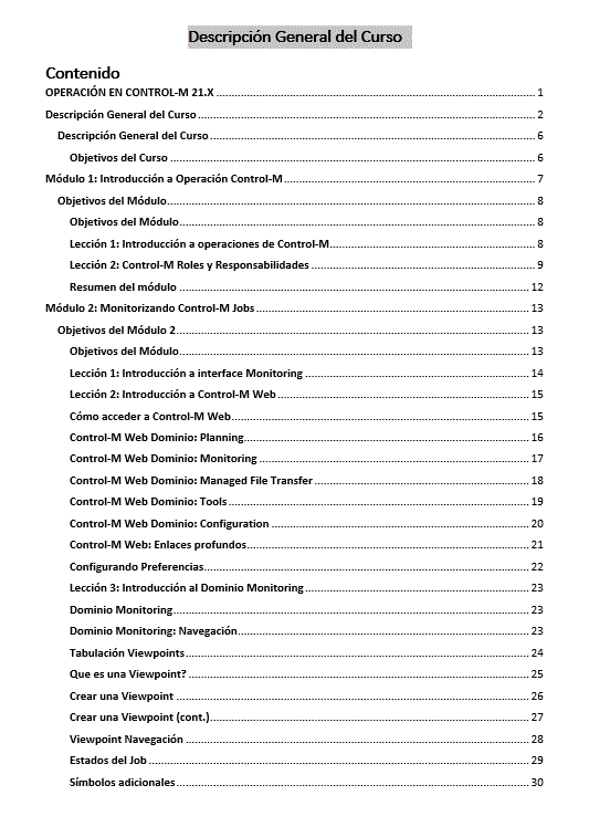 Aprende a manejar la funcionalidad Control-M web a través de 6 módulos bien explicados. Material en pdf de 116 páginas con ilustraciones e imágenes del producto en la versión 9.0.21.200.